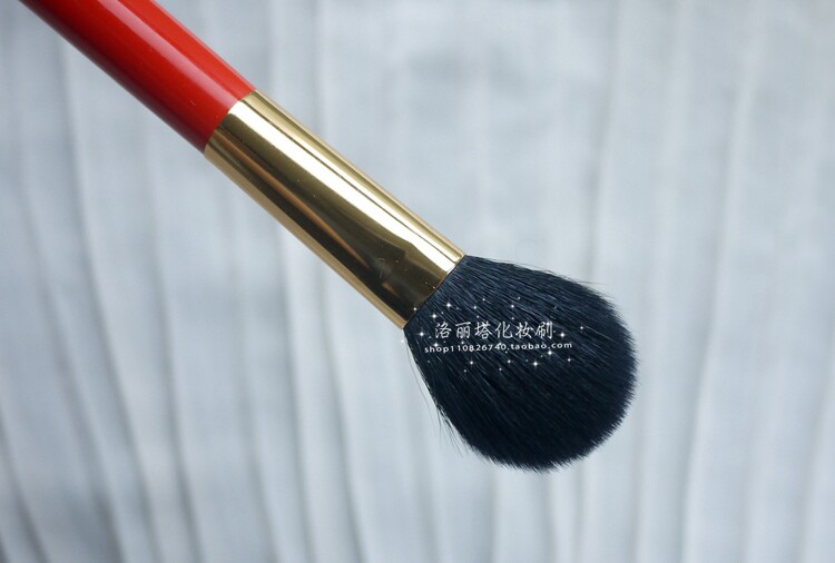 说回刷子,这款腮红刷,刷毛丰满密实,非常容易上色,颜色的还原度也很高,所以如果本身是比较容易猴屁股的重色腮红,用这款会不太适合,一般日系或者偏浅色的腮红,用着就很合适啦。最后谈一下刷毛的问题,这款刷子用的是中光峰羊毛(日本称粗光峰,属于中偏高档的羊毛,特点是毛条粗壮弹性好上色佳),竖着直接戳脸皮,某些角度有些扎,正常斜着扫是完全不扎的,白凤堂原版的s110,用的也是中光峰羊毛,但是其一日本人买走了最好的羊毛,其二他们处理刷毛的工艺更精进,触感肯定更好,但是作为平价的替代品,性价比还是很高的。
