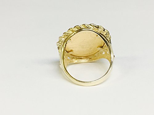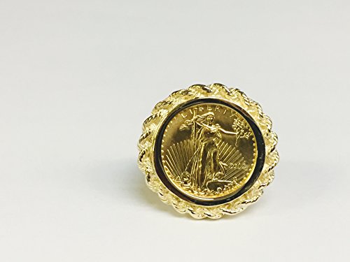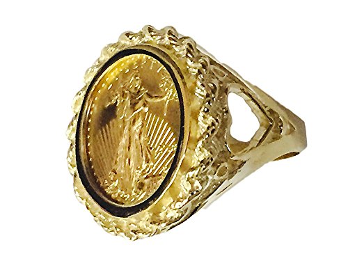 -. Title : 22 Kt 1/10Oz Lady Liberty Coin Set In 14 Kt Solid Yellow Gold Ladies Coin Ring (Random Year Coin)
