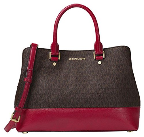 -. Title : MICHAEL MICHAEL KORS Savannah Large Patent-Leather Satchel (Brown/Cherry)