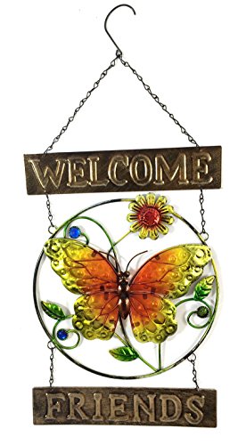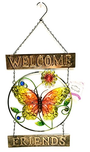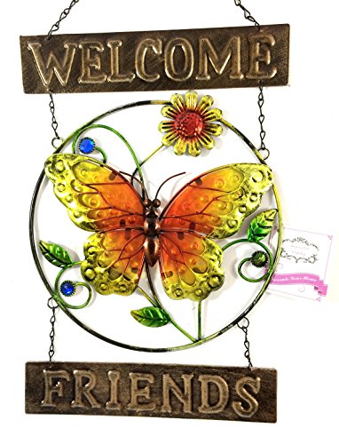 Bejeweled Display® Beautiful Butterfly w/ Stain Glass Welcome Sign & Wall Art