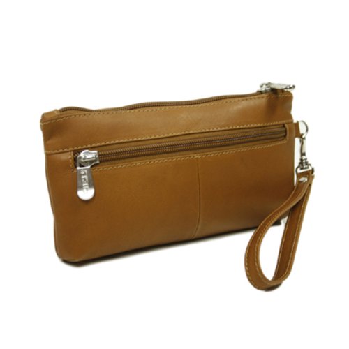 Top- zip opening to main compartment with interior zip-pocket. Rear zip-pocket and detachable wrist strap for easy carrying.