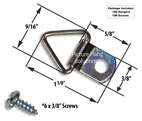 100 Pack Picture Frame Triangle Ring Hanger Picture Hanger with Screws 1 1/8" x 9/16" - Picture Hang Solutions
