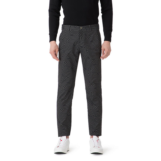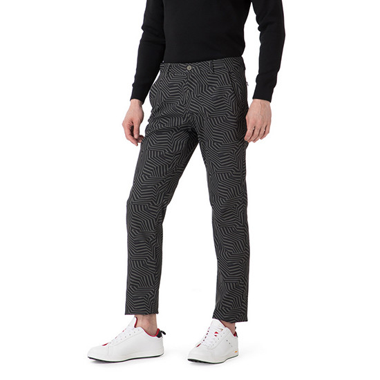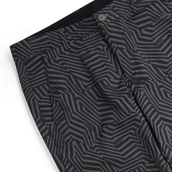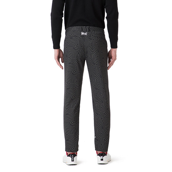 - 로고 착시 패턴 디자인을 적용한 남성 가을 팬츠.