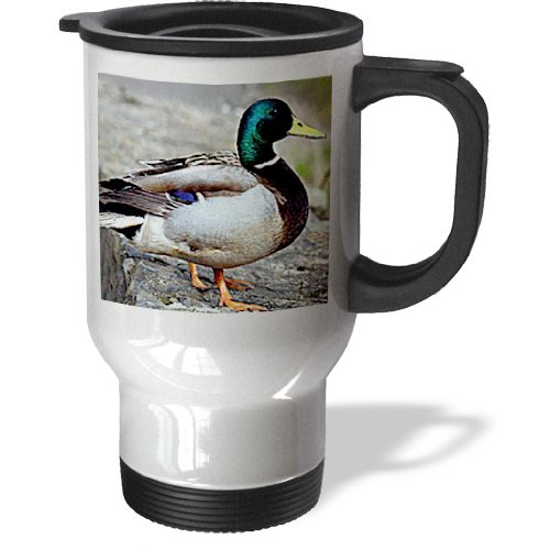 Studio : 3E Rose (Kitchen) Publisher : 3E Rose (Kitchen) Binding : Kitchen Product Description Duck Travel Mug is a great way to take your favorite hot or cold drink along. With a tapered bottom this stylish 14oz mug fits in a standard cup holder and features an easy-grip handle with thumb rest, slide opening lid and slanted drinking surface. This travel mug is made of stainless steel. Not microwave safe, hand washing is recommended. 0