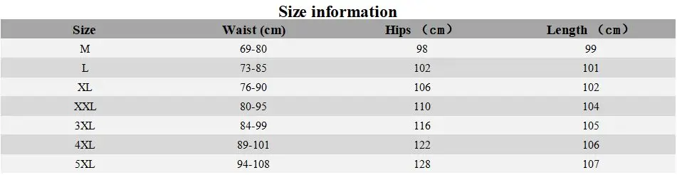 Size:Asia / M L XL 2XL 3XL 4XL 5XL
