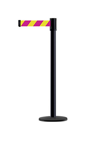 Tensabarrier - 890B-33-33-33-MAX-NO-D5X-C - black post, 2" wide, 13' length Chevron Magenta & Yellow belt
