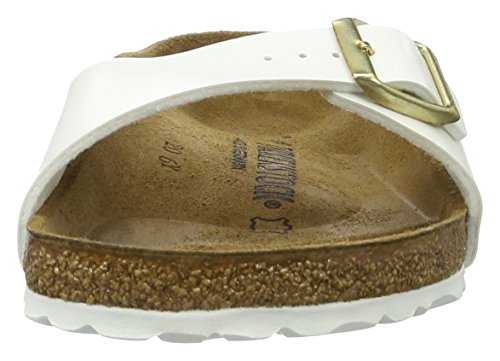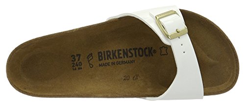 Binding : Apparel Product Description The BIRKENSTOCK Madrid, a classic model that was first launched as a "gymnastics sandal," has grown to become an essential fashion item. Fashion and functionality come together in perfect harmony on this elegant mule. BIRKENSTOCK has chosen the exceptionally skin-friendly and hard-wearing synthetic material Birko-Flor® in a robust nubuck look. Birko-Flor nubuck is made of easy-to-care-for and hygienic PVC, which has been lined on the inside with a soft, breathable layer of fleece. The surface looks like nubuck leather. This high-quality material is very gentle on the skin and comfortable. The flexible leather lining, which is gentle on the skin, nestles up softly against your foot and adjusts to its contour. The open-pored and thus very breathable surface makes for a comfortable foot climate, even during more strenuous physical activity. Cork is a sustainable material extracted from the bark layer of the cork oak. This natural product is insulating and offers very good cushioning. EVA (ethylene vinyl acetate) is a high-quality, very light, elastic material with extremely good cushioning. As a result, it smooths out slight irregularities in the floor and ensures that every step is softly cushioned. Birko-Flor is made of easy-to-care-for and hygienic PVC, which has been lined on the inside with a soft, breathable layer of fleece. This high-quality material is very gentle on the skin, and it's comfortable while also being very durable. The flexible leather lining, which is gentle on the skin, nestles up softly against your foot and adjusts to its contour. The open-pored and thus very breathable surface makes for a comfortable foot climate, even during more strenuous physical activity. Cork is a sustainable material extracted from the bark layer of the cork oak. This natural product is insulating and offers very good cushioning. EVA (ethylene vinyl acetate) is a high-quality, very light, elastic material with extremely good cushioning. 0