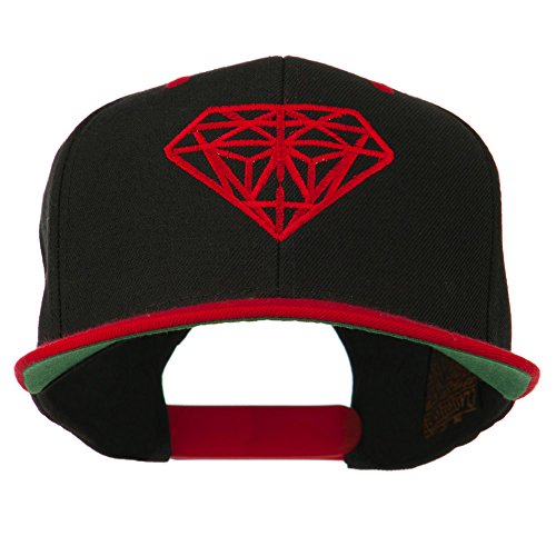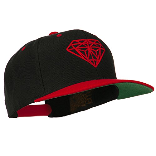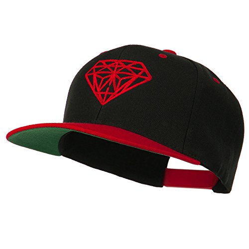 -. Binding : Apparel -. Brand : E4hats -. Color : Black/Red -. Department : mens -. Feature : Made of 80% acrylic and 20% wool. / One size fits most with an adjustable plastic snap strap closure, fitting up to size 7 1/2. / Same material inner hatband. / Adult/Unisex. / Crown measures 4 inches deep. -. ProductGroup : Apparel -. ProductTypeName : HAT -. Title : Diamond Embroidered Snapback Two Tone Cap - Black Red