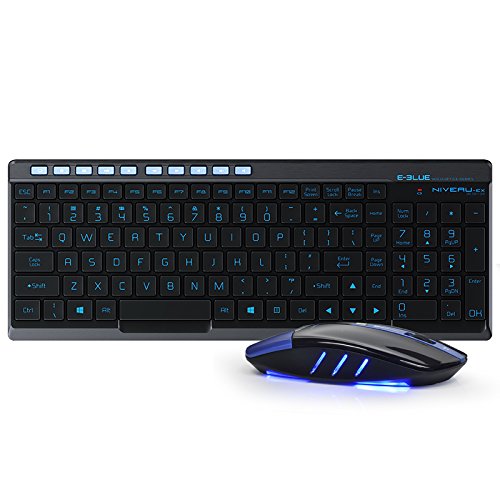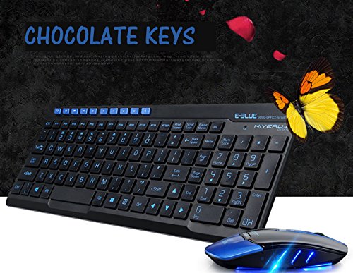 -. Feature : 2016 NEW STYLE:The E-3LUE EKM825 Wireless Keyboard/Mouse Combo is the newest product,with the Champagne Gold or the Dignity Black,will be your best choice. / BUSINESS DESIGN:So easy to carry and collect, it is a good choice for workers and students and gamer and so on. / TOP QUALITY:Waterproofing technology and Chocolate Keys,it will a newly experience. / HIGH TECHNOLOGY:New generation NANO receiver, in 10 meters effective range with 2.4G wireless receiving technologyandbidirectional transmission anti interference. / CONVENIENT TO USE:With the wireless settings, anytime and anywhere , and the battery function, you only need to use the AAA battery, you can easily use.