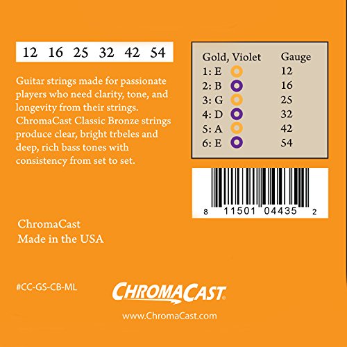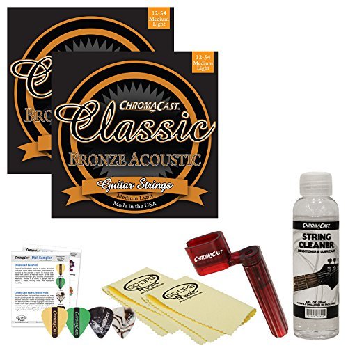 ChromaCast JB-AGAP-MEDLIGHT Acoustic Guitar Essential Accessory Bundle with 2 Sets Classic Bron...