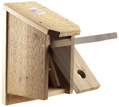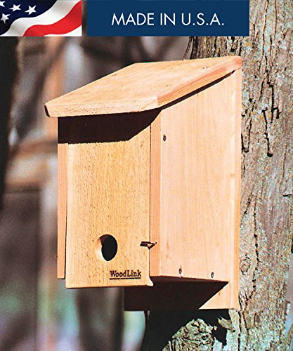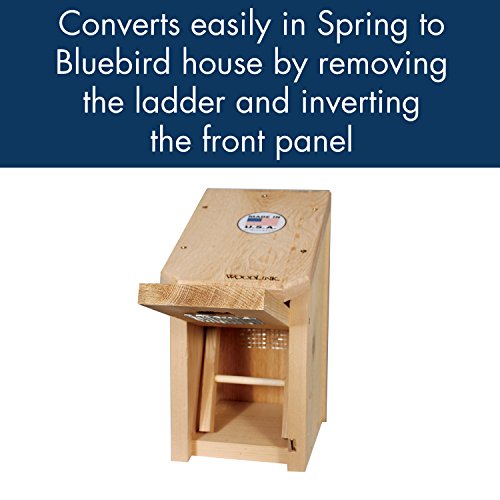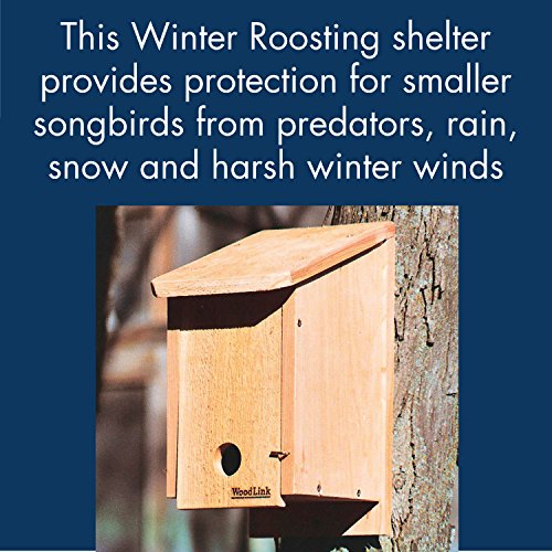 Woodlink sturdy cedar bird Roosting Box gives smaller songbirds protection from from predators, rain, snow and harsh winter winds^ Constructed of re-forested, kiln dried, inland red cedar with screws^ Screws included for mounting Easy conversion to bluebird house in season by removing the ladder and inverting the front panel. Made in USA.Feature