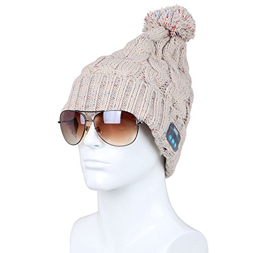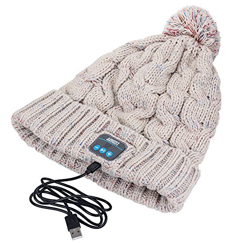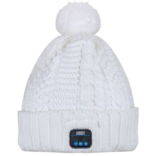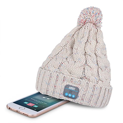 August EPA30 - Bluetooth Headphone Cable Knit Hat - Ideal Christmas Gift for Gadget Lovers (Beige)