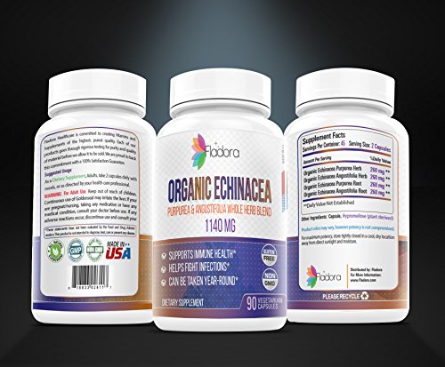 -. Feature : PROMOTES BIG IMMUNE BOOST - Echinacea helps your immune system get a boost by promoting an increase in the development of White Blood Cells. These White Blood Cells fight off disease and infection, so Echinacea is a great way to help with that. Many people use it to help prevent the contraction of the common cold. / MANY OTHER POSSIBLE BENEFITS - Though not conclusively shown to be effective for them, Echinacea is also commonly used against many other infections including the flu, urinary tract infections, vaginal yeast infections, genital herpes, bloodstream infections (septicemia), gum disease, tonsillitis, streptococcus infections, syphilis, typhoid, malaria, and diphtheria. / GMP CERTIFIED - Our Production Facilities are certified GMP, which stands for Good Manufacturing Practice. This means our products are certified to be free from contamination, consistent in their manufacture, and that the manufacturing process is well documented. It also means that our personnel are well trained and that the product has been checked for quality throughout production - not just at the end phase. / NON GMO - This Dietary Supplement from Fladora is produced without the utilization of any Genetically Modified Organisms. We care about your health, so we make sure our supplements contain only natural ingredients. / FLADORA'S PLEDGE TO YOU - Fladora Healthcare is committed to creating Vitamins and Supplements of the highest, purest quality. Each of our products goes through rigorous testing for purity and quality of materials before we allow our name to be put on it.