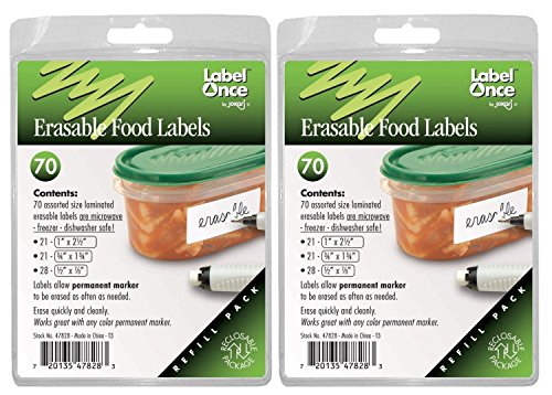 Jokari 70 Count Label Once Erasable Food Labels Refill Packs, Multicolor, 2-Pack
