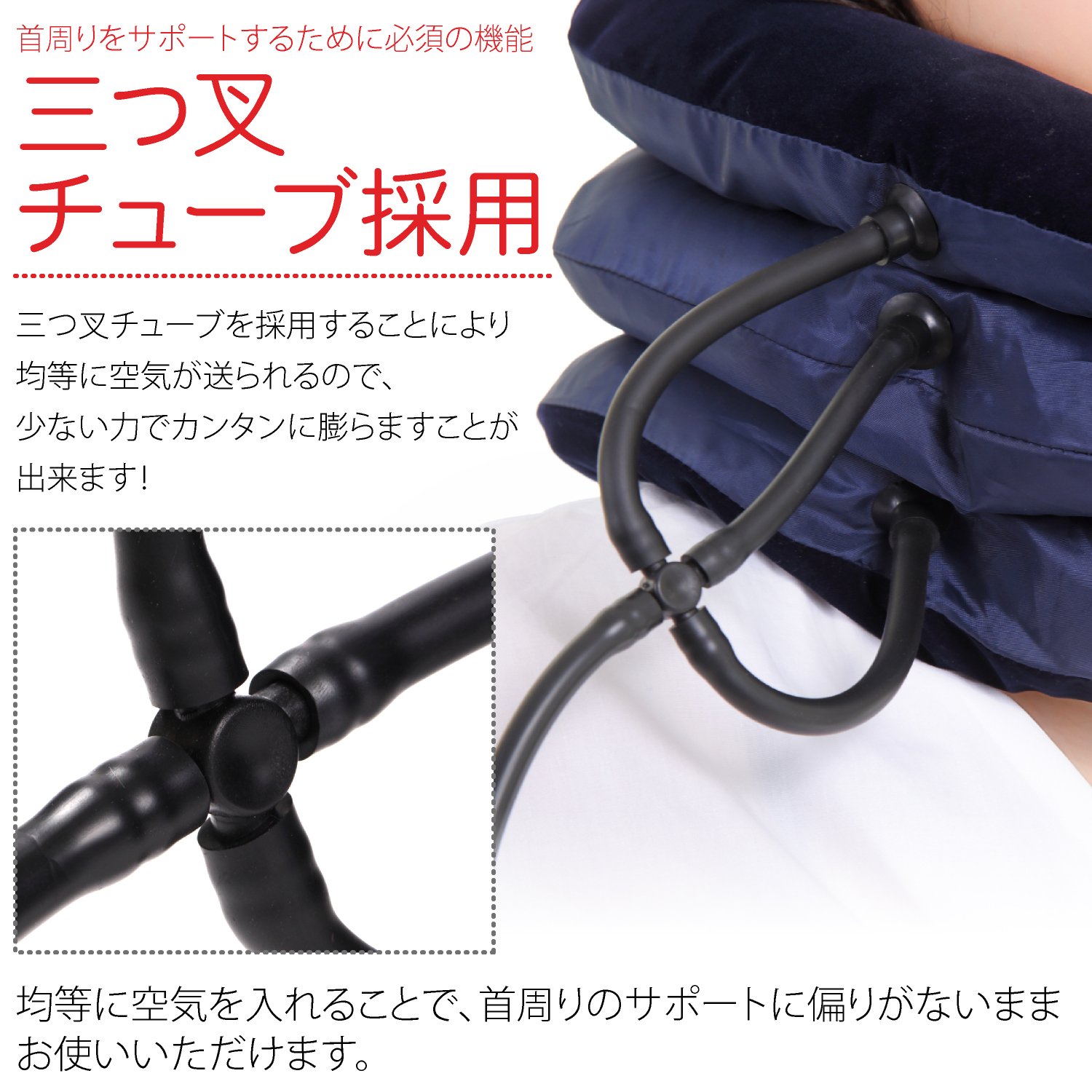 By adopting a three-piece tube, air is evenly sent, so it can be inflated easily with less force.