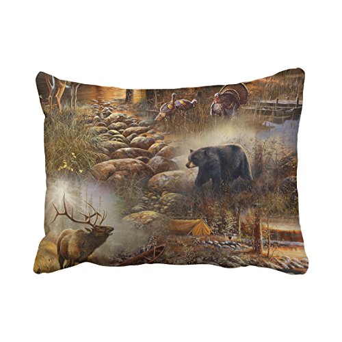Accrocn Pillowcases Vintage Chic Cute Forest Animal Deer Bear Polyester Pillow Covers 20 x 26 Inch Standard Size Rectangle Cushion Decorative Pillowcase With Hidden Zipper Home Sofa