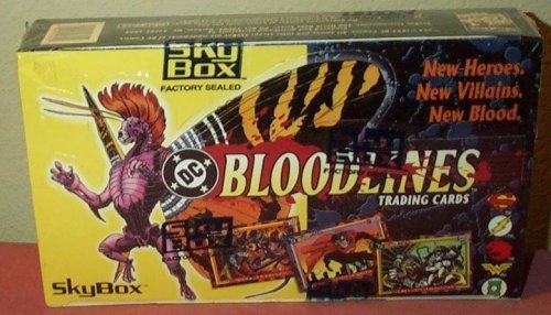 -. Feature : "New Heroes. New Villains. New Blood." / 36 Packs of DC Bloodlines Trading Cards. / Each Pack contains 8 Cards. 81 Regularly-Numbered Cards Featuring Original Art. / Randomly Inserted Foil-Embossed Cards of the four Supermen! / Randomly Inserted Superman Exchange Card!