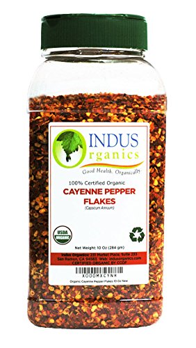 Indus Organics Cayenne Pepper Flakes (40,000 SHU), 10 Oz Jar, Premium Grade, High Purity, Freshly Packed