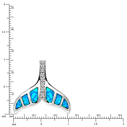 -. Title : Sterling Silver Whale Tail CZ Accented Necklace Pendant with Synthetic Blue Opal and 18" Box Chain