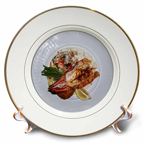 3dRose cp_20493_1 Lobster Dinner Delicious Display of a Lobster Dinner with Healthy Vegetable Sidedish Porcelain Plate, 8-Inch