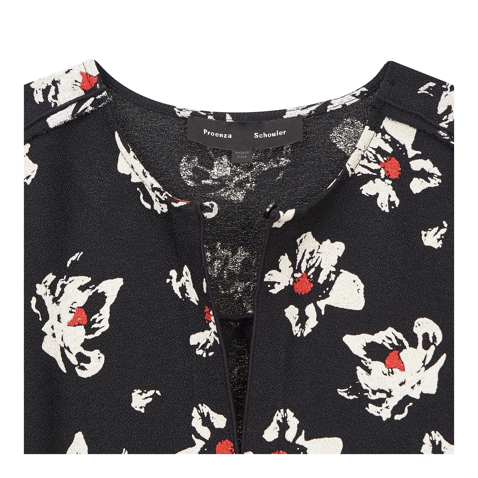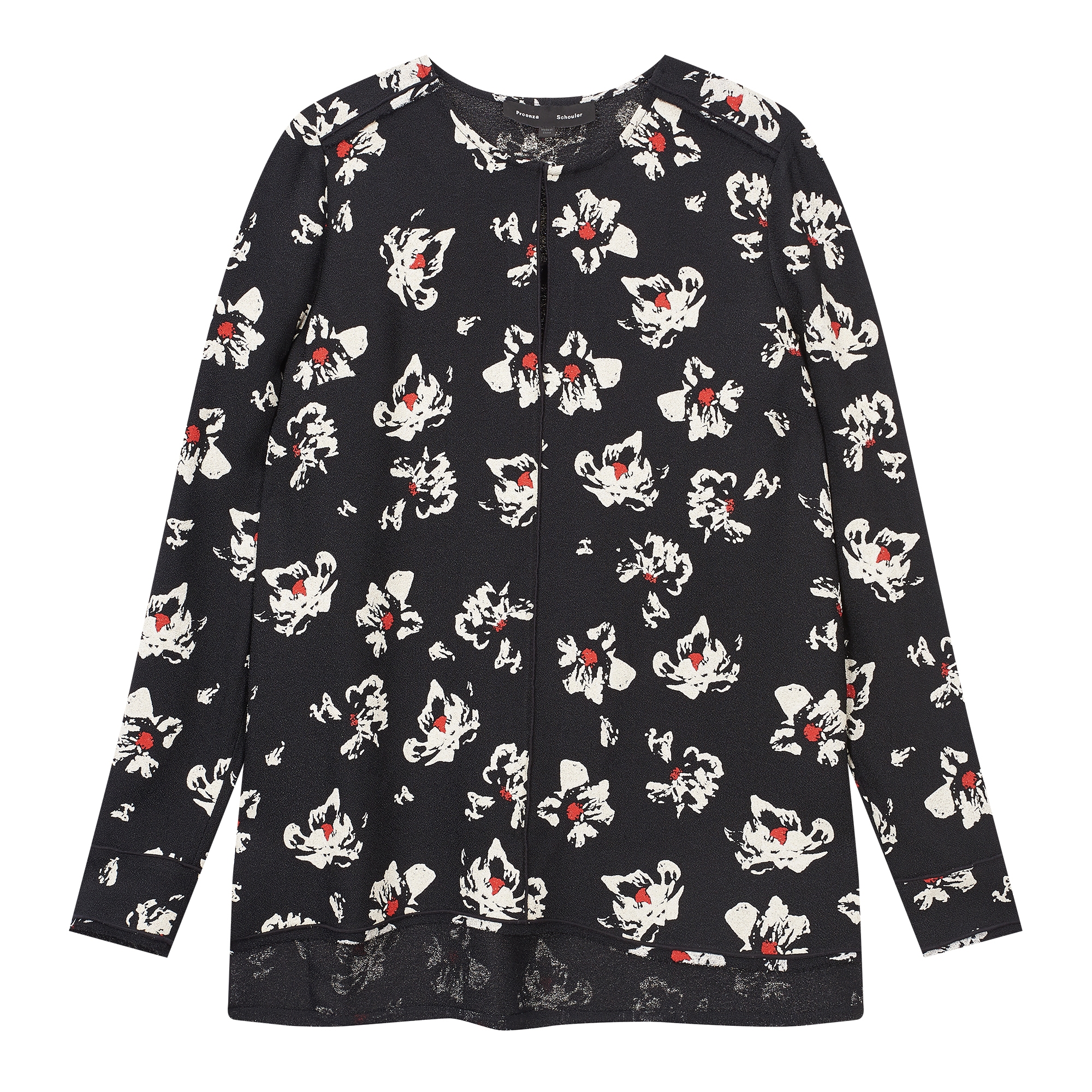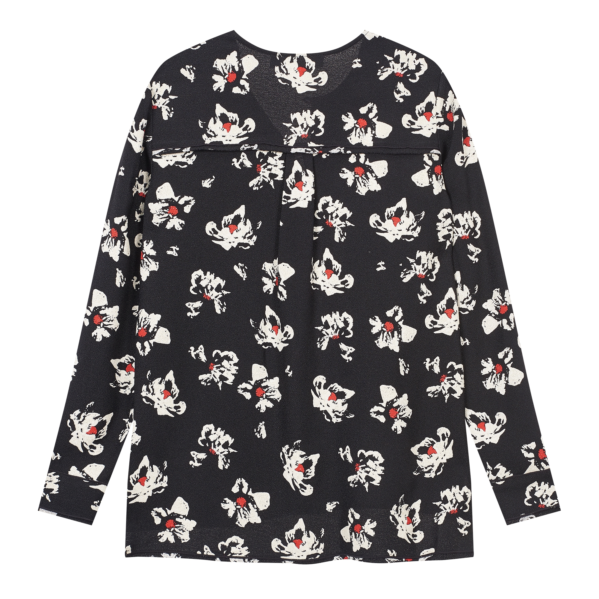 컬렉션 : 2018 Spring/Summer 디자인 포인트 :- 화려한 플로럴 패턴 디테일이 돋보이는 트렌디한 무드의 블라우스- 언발란스한 길이감으로 포인트를 더한 디자인- 레이온 소재로 부담없이 스타일링 하기 좋은 포인트 아이템 스타일링 추천 :베이직한 스키니진 혹은 와이드 팬츠 등의 아이템과 트렌디한 스타일링을 할 수 있음