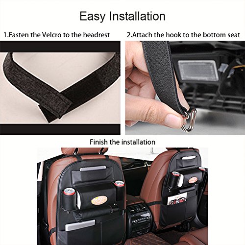 【Eco-friendly Material, Premium Quality】 ZOTO backseat organizer and bonus kick mat seat protector are made with high quality PU leather --water-resistant, anti-scratched or easy wipes clean, resist regular wear and tear. Against damage from scuff marks,snow,sleet and mud, that will give your Kick Mats a Super Long Life and Always Look Good.