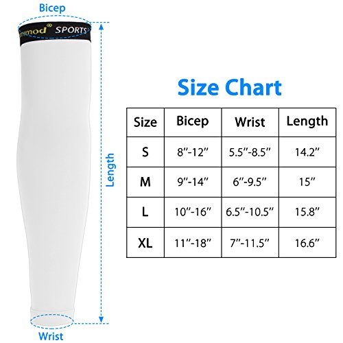 Shinymod Arm Sleeves UV Protection Sleeves for Men Women Youth Arm Warmers Compression Sports Long Sleeves Cycling Hiking Golf Basketball Driving Fishing Tattoo Covers Elbow Sleeves (White, XL)