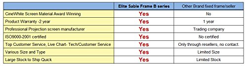 - Feature : Award Winning CineWhite 1.1 Gain front projection material with black backing and full tension uniformity across entire viewing surface. Active 3D and 4K Ultra High Definition Ready / Simple assembly and includes installation hardware / Stylish black velvet covered frame absorbs projector overshoot and increases picture contrast / Pairs well with the following projectors: Viewsonic PJD5134, PJD5155; BenQ W1070, HT Series, HT1085ST, HT1075, MS524; Optoma HD141X, HD26; Epson VS230, 730HD, EX7235; Asus S1; fully compatible with DLP, 1080P, 720P, SVGA, WXGA, VGA, LCD, MHL, Pico, HDMI, LED Projectors / 2 Year Manufacturers Warranty