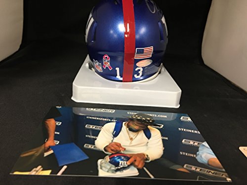 Odell Beckham Jr Autographed Signed New York Giants Revolution Speed Mini Helmet With Breast Cancer Awareness Ribbon BCA Custom Helmet Decals Steiner Sports COA & Hologram