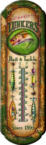 River's Edge 1291 "Lunkers Bait and Tackle" Nostalgic Tin Thermometer