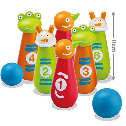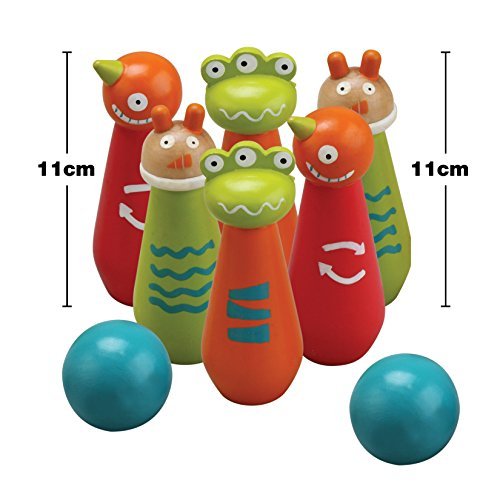 Studio : Bee Smart Publisher : Bee Smart Binding : Toy Product Description Set of six brightly colored out of this world wooden Monster skittles. Hand-painted with two wooden bowling balls. Great fun and easy to play! Made from high quality, responsibly sourced materials using non-toxic paints. 0