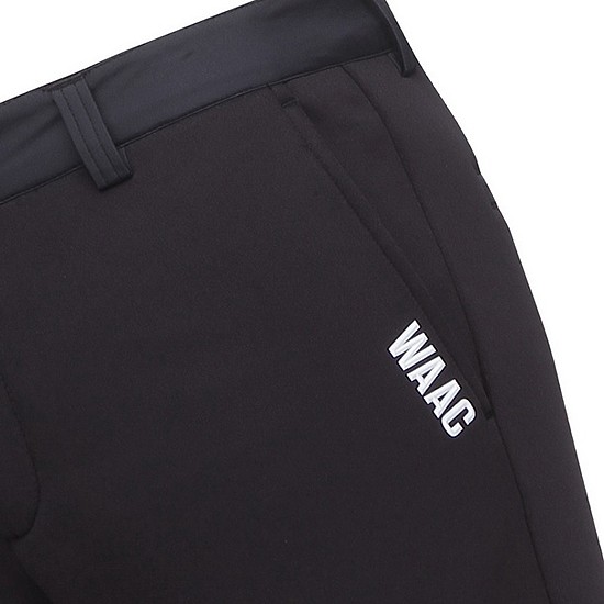 - 허릿단 이소재 배색을 적용한 남성 팬츠.