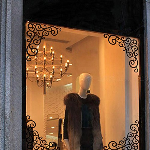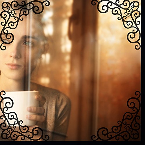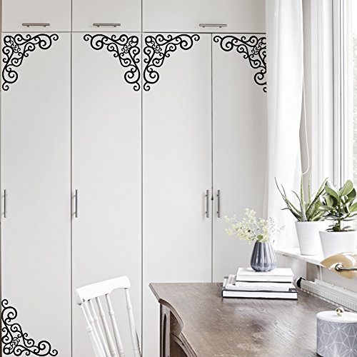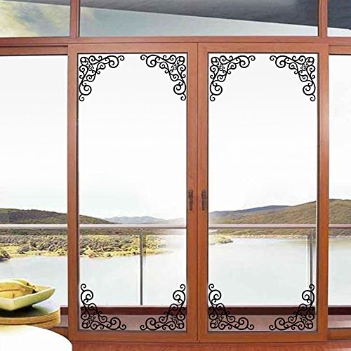 Dnven (Each Corner is 10"w X 10"h, 4 Corners) DIY Retro Vintage Style Floral Vines Corner Vinyl Decals Stickers for Window Wall