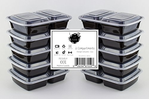 LT Goods 2 Compartment Stackable Meal Prep Food Storage Containers - 32oz, 10 pack - 100% Made in Canada