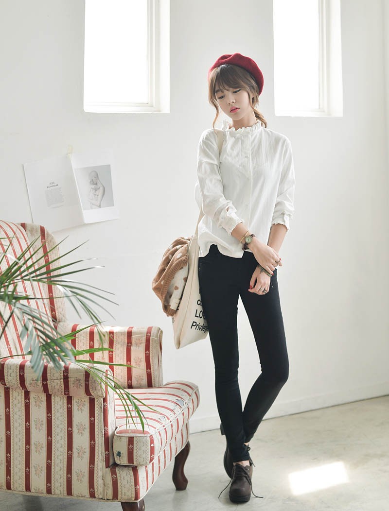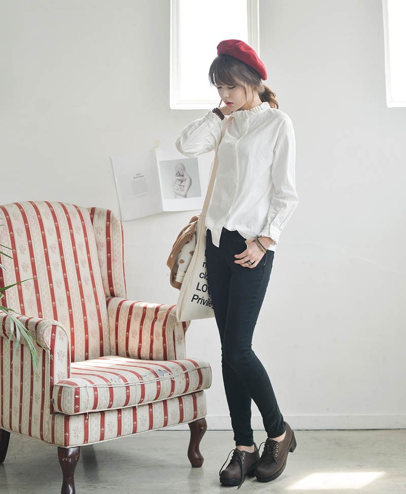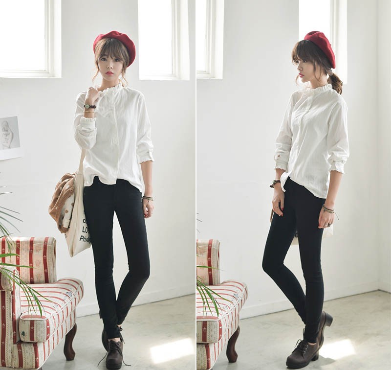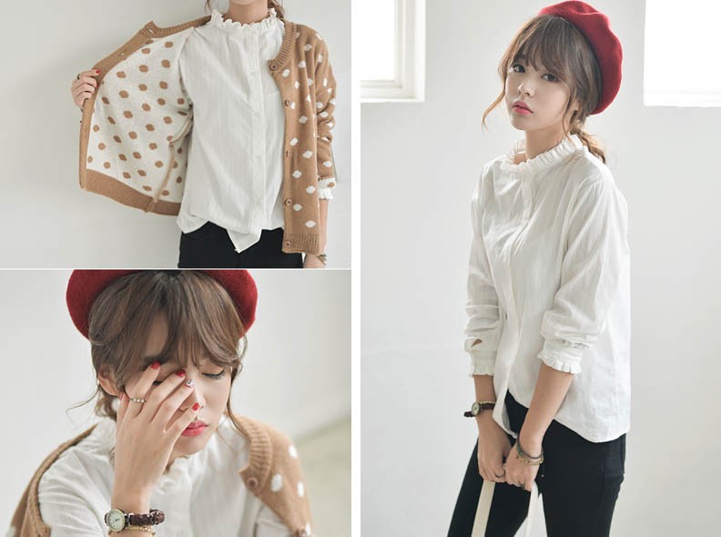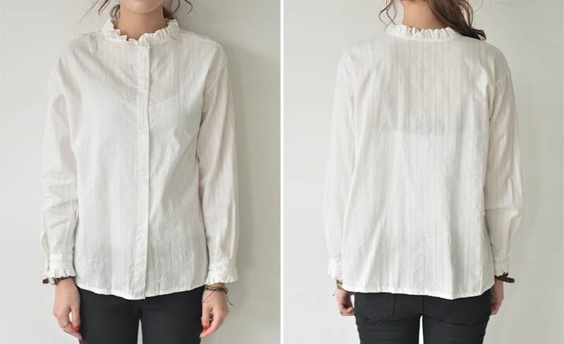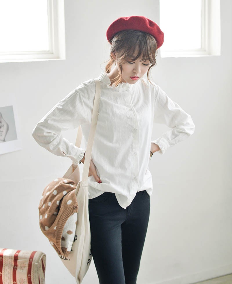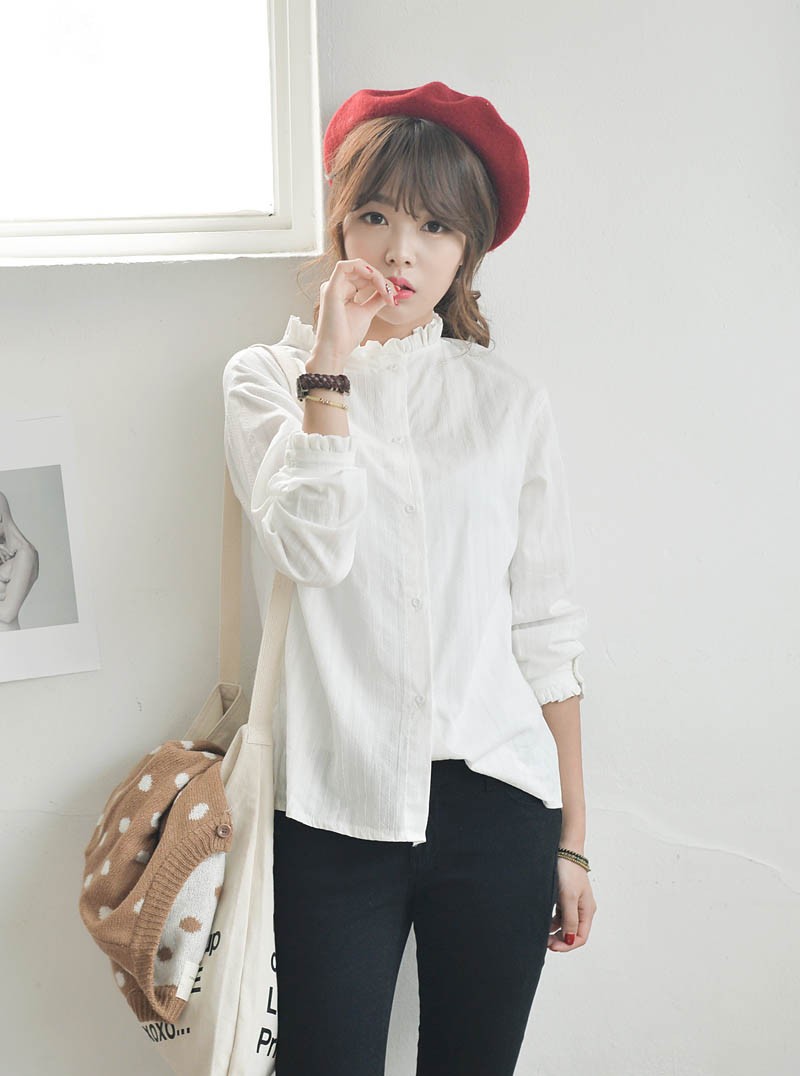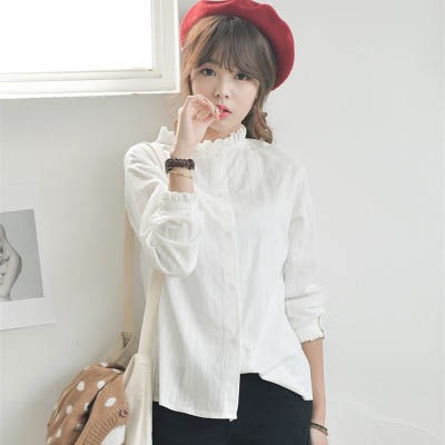 【通関待ちや不良により出荷遅くなる場合はメールにてご連絡いたします。メール受信設定によっては正常に受信されない場合はございますので、 弊社からのメールを予め受信頂くようご設定くださいませ。】 トップス シャツブラウス スタンド襟 キュート 可愛い レディス レディース 春春 新作女性らしい、フリル衿・フリル袖のシャツブラウスです。1枚でも決まり、ジャケットの下にインしてもフリル衿が可愛い!◆サイズ:S着丈61肩幅36袖丈55胸囲84M着丈62肩幅37袖丈56胸囲88L着丈63肩幅38袖丈57胸囲92XL着丈64肩幅39袖丈58胸囲96◆素材:綿混紡
