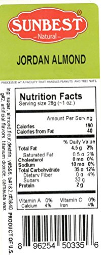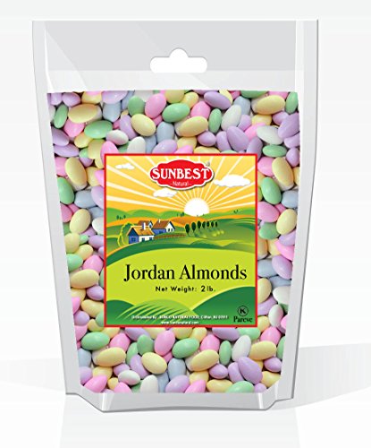 -. Feature : SUNBEST Jordan Almond 2 lbs in Resealable Bag / Sweet pastel candy coated almond, delicious, crunchy, and always fresh / Health Benefits: Contain high levels of healthy unsaturated fatty acids, lowers cholesterol, and boost energy / Used for snacking or baking. / OK Kosher Certified