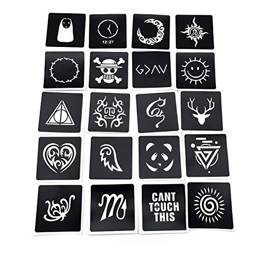 Pack of 20 Sheets Crafts Adhesive Stencils Template for Henna Tattoo Body Art Painting Glitter Tattoos (Style 5)