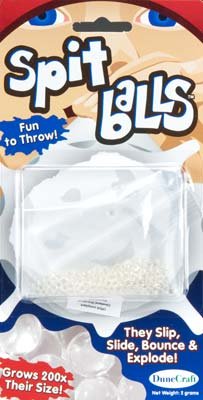 Do you need to exact revenge on an unsuspecting co-worker or cheating classmate? Try a DuneCraft Spit Ball. DuneCraft Spit Balls are amazing wonders of chemistry that are slimy and gross to the touch. DuneCraft's reusable Spit Balls can bounce and then explode on target. They grow 200x their size, slip, slide, and explode. You will have hours of fun mastering the simple art of Spit Ball launching. Spit Balls are safe and non-toxic.Feature