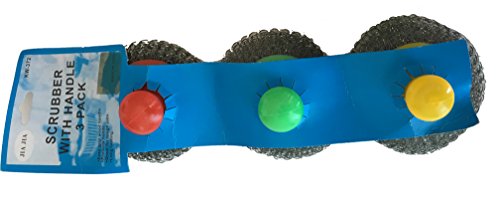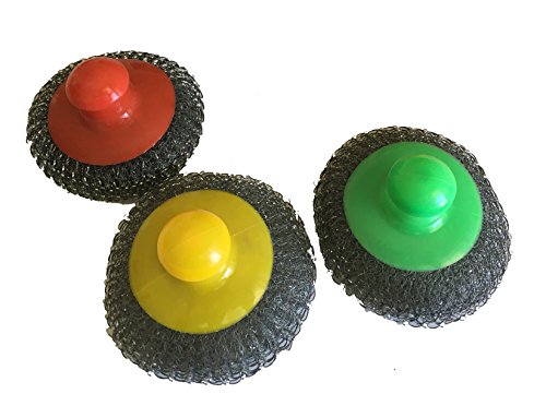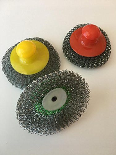 Heavy Duty Large Stainless Steel Scouring Scrubbers with Colorful Handle, Pack of 3 Different Colors
