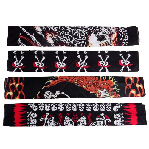 Studio : HDE Publisher : HDE Binding : Apparel Product Description Maybe you're a biker looking for a sweet piece of head-wear to match the decals on your motorcycle. Maybe you're a rebel looking to make a statement with your clothing. Maybe you just really, really like bandannas. There are all kinds of uses for Cotton Bandannas. You can wear them on your head or tie them together to use as a belt. They can even be used with the kids for dress up playtime or use it as a functional art piece around your home. These packs come in several color varieties. For best results, hand wash in cold water before first use. Bandannas are perfect for all of your accessory and crafting needs! 0