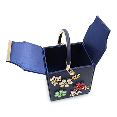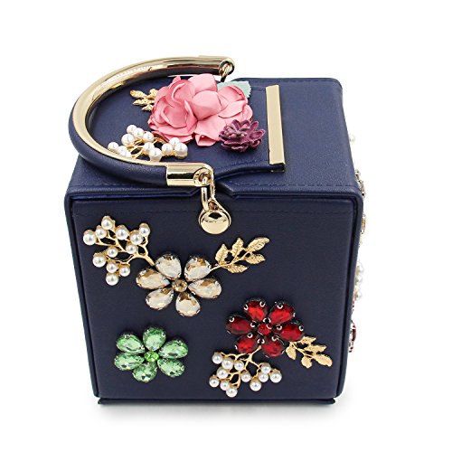 -. Title : Flada Box Bag Women's Flower Clutches Purses Bags Pearl Beaded Rhinestone Evening Handbag with Handle