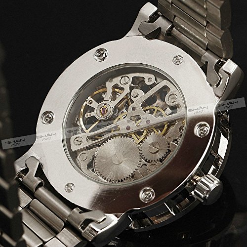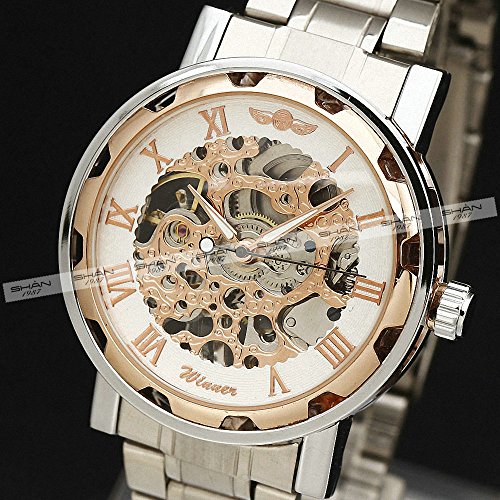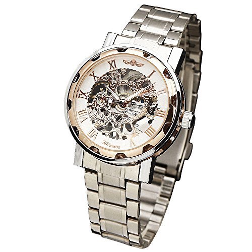 -. Title : WINNER Retro Fashion Men Women Mechanical Wrist Watch Stainless-Steel Strap Skeleton Roman Numbers W/ Box