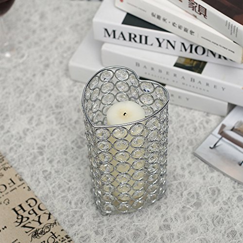 VINCIGANT Heart Crystal Vases Silver Tealight Candle Holders for Christmas Birthday Party Decoration 7.2 Inches Tall