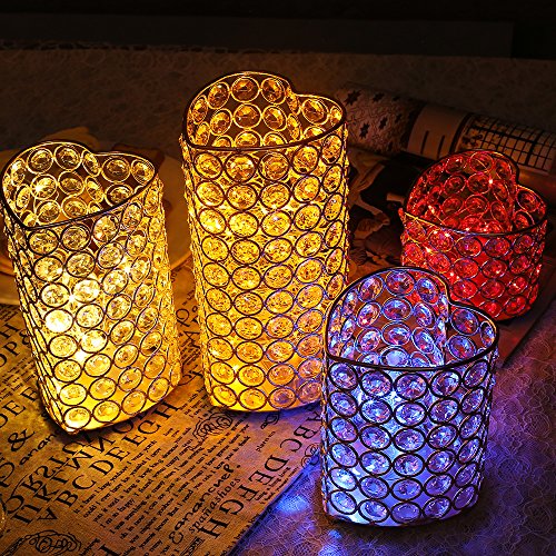 - CLASSY & UNIQUE DESIGN:With its chic colors (silver/gold) and contemporary design, this special crystal tealight candle holder is going to make your every indoor or outdoor surroundings more romantic . When lit, sparkling shining brightly with flashes of light, like real Jewelry.Scatter them across a table and feel like you're dining among diamonds.