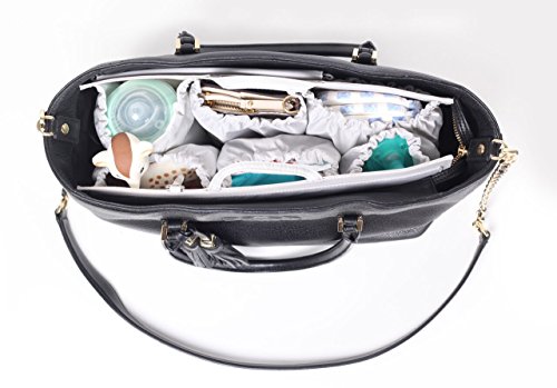 ToteSavvy is the modern alternative to a diaper bag by combining the inner lining of a traditional diaper bag with your own handbag collection. Made from a durable nylon twill that's easy to wipe clean, this organizer insert boasts features not found in other purse organizers. ToteSavvy includes an insulated bottle pocket, key clasp, changing mat, cell phone pocket, and flat pocket for paperwork. ToteSavvy is 14" in length and 10" in height (when inside a handbag).Feature