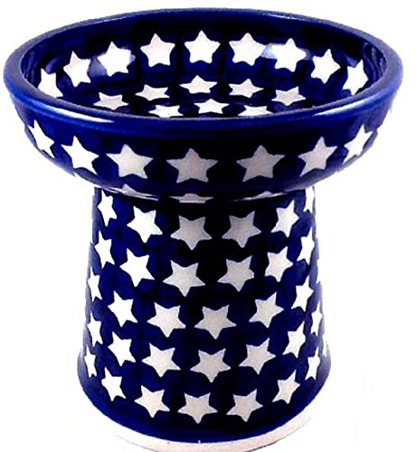 Studio : Manufaktura Publisher : Manufaktura Binding : Misc. Product Description This overall pet dish is 5.4" high to the rim and is well suited to all cats (or small dogs). The 5.5" diameter/1.25" deep bowl was designed specifically for dry food, hard food or water for one cat. It holds 1.5 cups. The deeper bowl keeps dry food better contained and less exposed to air. The elevated pedestal design Polish pottery stoneware bowl helps keep water cleaner and better tasting. This dish may also be used to serve a small amount of wet food to pets with narrower muzzles. How high should your pet's dish be for maximum comfort? Your pet's dish rim should come to about mid-chest on your cat or smaller dog. 0