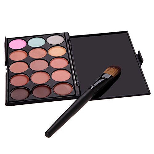 -. Binding : Misc. -. Brand : Chinatera -. Color : Ivory -. EAN : 0602701191577 -. Feature : A Professional-quality foundation/Concealer brush designed to create even finish, flawless look. Works well with any foundation. / The brush is hand-made by over 3 years experiences workers,Every single hair is picked up by hand and diameter no more than 0.07mm, so it won't hurt your skin at all only leaves you soft feeling / Sponge is very thick and smooth,gives you a flawless foundation application every single time, no streaks and no areas with too much makeup or too little, will not lost its shape or had any nicks or dings for year's use / Combines 15 colours in one palette, it helps create more than 1,000 amazing looks.the light colour is suitable for redness, acne, etc.the medium colour is perfect for dark shadows in the under-eye area.the dark colour provides exceptional camouflage and it adheres well to the skin. / Included:Makeup Brush,15 Colour Concealer, Sponge Puff -. Label : Chinatera -. Manufacturer : Chinatera -. Model : 90252 -. MPN : 90252 -. NumberOfItems : 1 -. PackageQuantity : 3 -. PartNumber : 90252 -. ProductGroup : Beauty -. ProductTypeName : BEAUTY -. Publisher : Chinatera -. Studio : Chinatera -. Title : Chinatera 15 Colors Face Makeup Contour Cream Concealer Camouflage Palette + Powder Foundation Brush + Makeup Sponge Puff -. UPC : 602701191577
