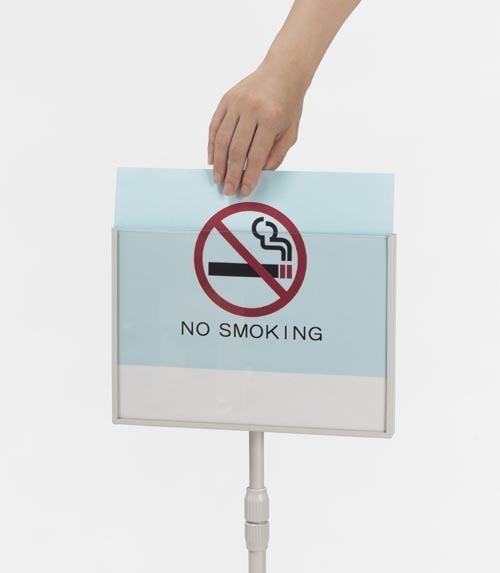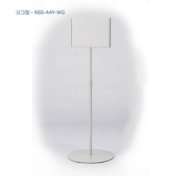 両面表示タイプのサインスタンドです。板面はA4サイズ。高さの調節可能。色は明るいホワイトグレーです。 |