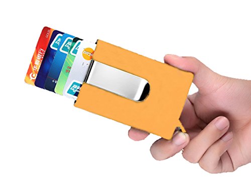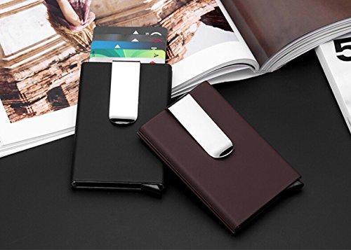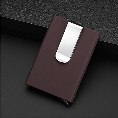 -. Feature : Brand new automatic pop-up sliding credit card holder case, perfectly protects your cards and avoid demagnetizing / Metal stainless steel and PU materials combination, smooth feeling, slips into your pocket, fits your briefcase, handbag, just like a new one all the time / L*W*H: 10cm/ 3.9 inches*6.4cm/ 2.5 inches*1.24cm/ 0.5 inches weight: 99g / Slim and lightweight money clip and credit card holder case, easy and convenient to carry / It stores approximately 15 business cards, designed to hold different sort of cards, such as ID cards, credit cards, gift cards and more, in addition, it is also safe enough to store money
