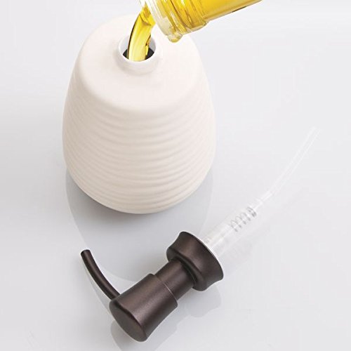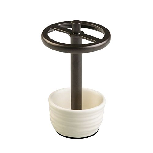 -. Feature : Set of 2 includes toothbrush holder and soap pump / Refillable soap dispenser holds 14 oz. / Toothbrush holder stores 4 toothbrushes / Made of ceramic with bronze accents / Soap Pump: 4" x 3.5" x 6.5", Toothbrush Holder: 3.25" diameter x 5.5"